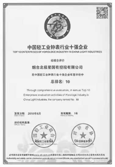 北極星鐘表榮獲“中國輕工業(yè)鐘表行業(yè)十強企業(yè)”